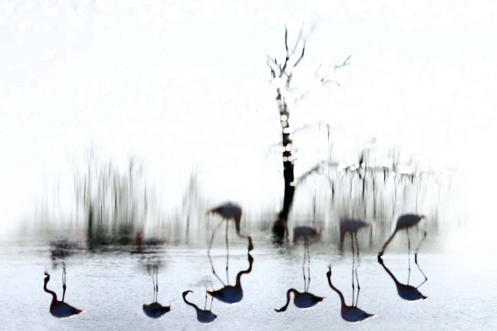 This artistic project explores the pink flamingo, an iconic species of the Camargue. Through a subjective and creative approach, I use blur to suggest the bird’s elegant, characteristic silhouette, leaving room for interpretation and imagination.