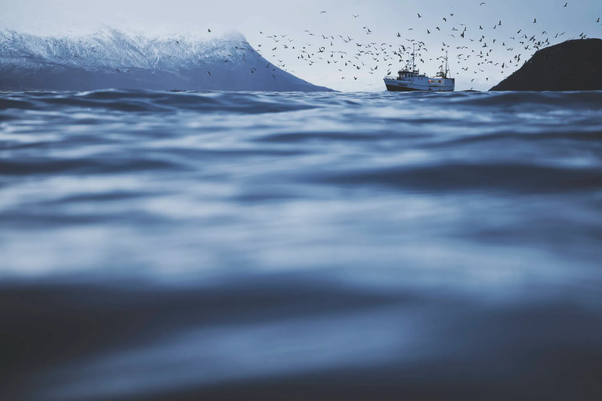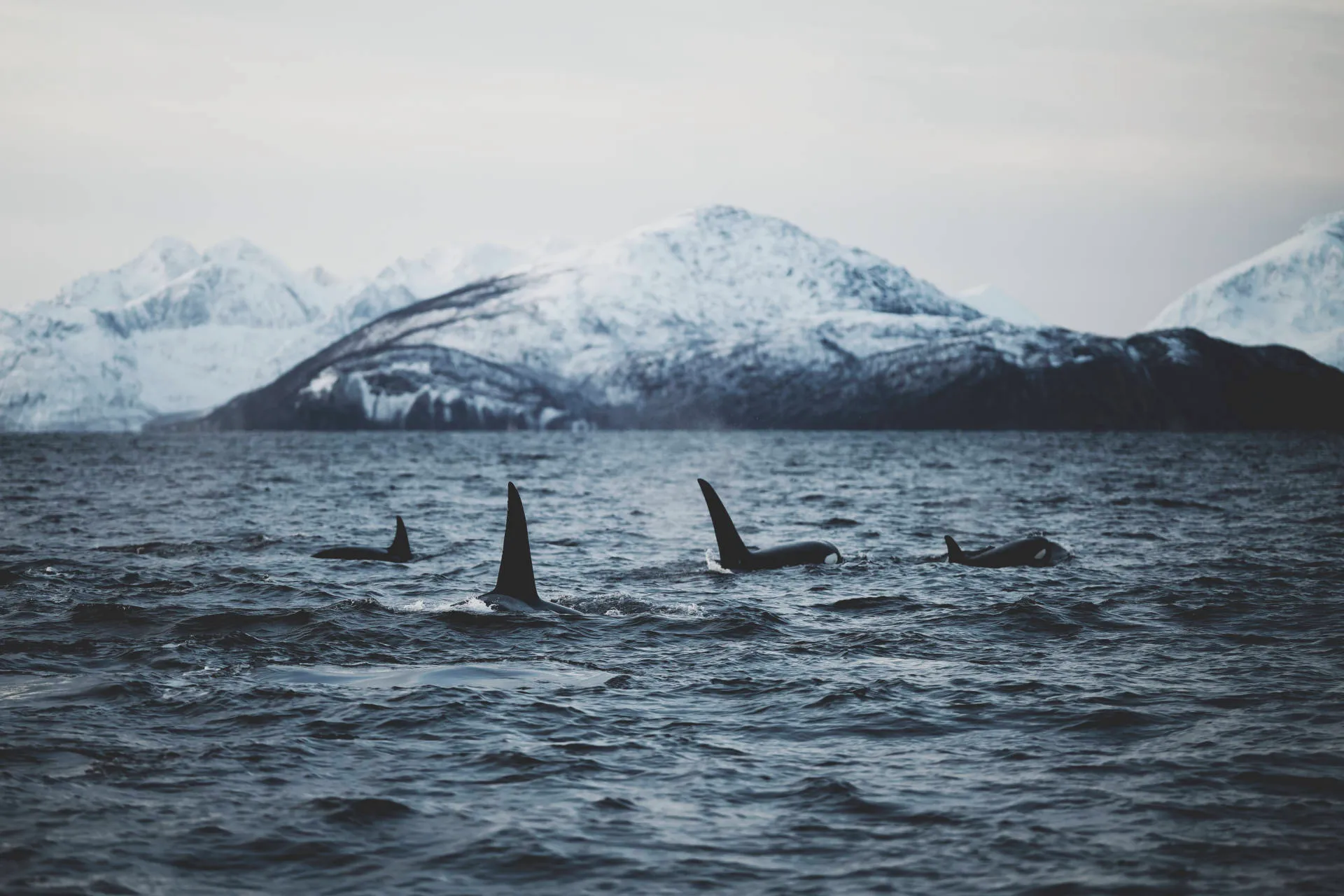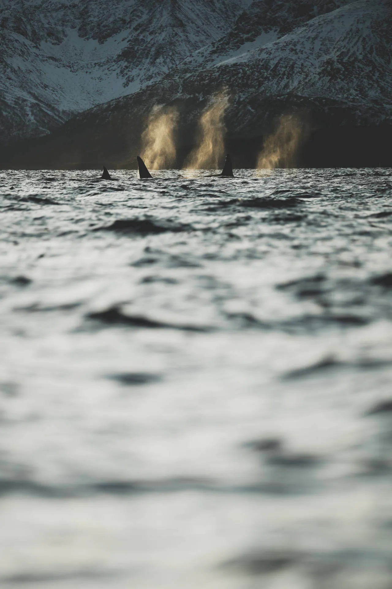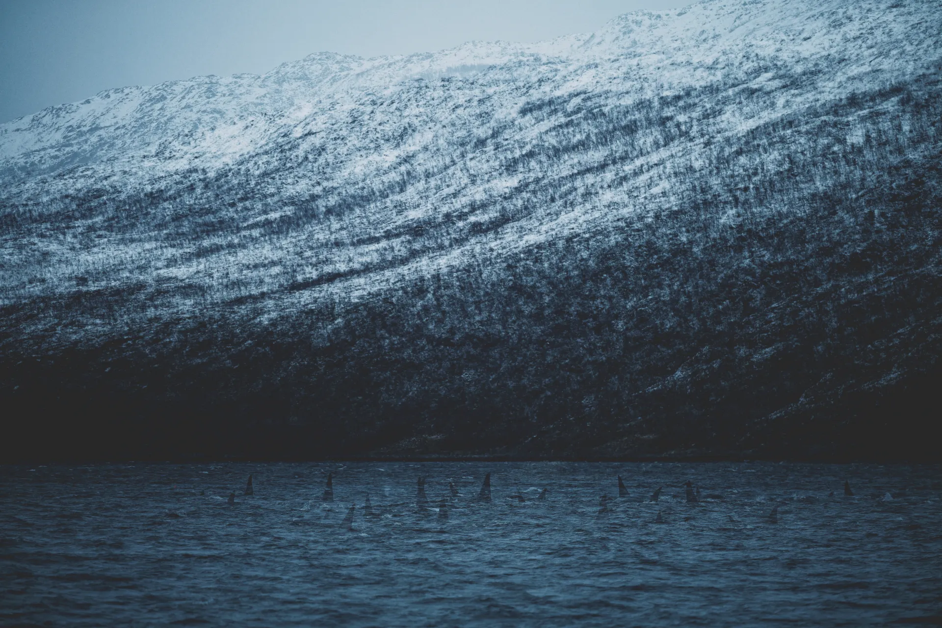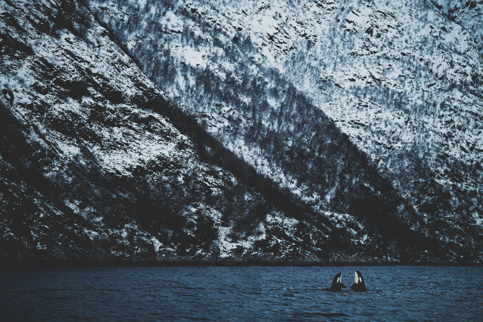 This series was created in the Norwegian fjords during photographic trips dedicated to orcas and whales. There, I sought to capture the atmosphere of the far north, where steep slopes plunge into icy waters, a seasonal refuge for herring and a prime hunting ground for great cetaceans.